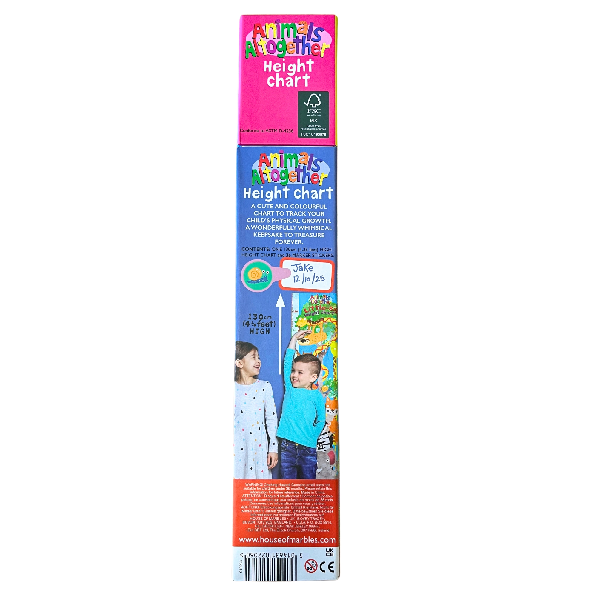 Verfolgen Sie das Wachstum Ihrer Kinder mit diesem entzückenden, bunten Messstab – eine wunderbare Möglichkeit, jeden Zentimeter festzuhalten und ein wertvolles Erinnerungsstück zu schaffen. Der Messstab reicht bis 130 cm (4,25 Fuß) und enthält 36 farbenfrohe Marker-Aufkleber, um jeden Meilenstein auf charmante Weise zu markieren.